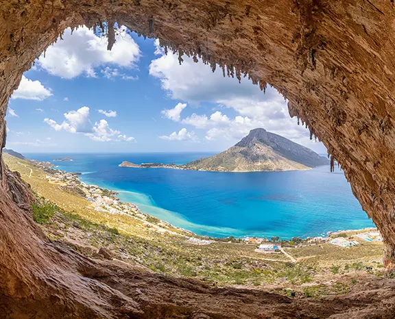 Run to Kalymnos, the heaven of the climbers. Cliffs Grande Grotta or snorkel Vathy Bay's emerald seas. At Pothia, eat mououri (stuffed squid) at a harborfront ouzeri and toast with foustalini, citrous liqueur. Adventure tip: Search for Kandouni Beach, a secret cove with azure peacock-blue waves by renting a scooter..