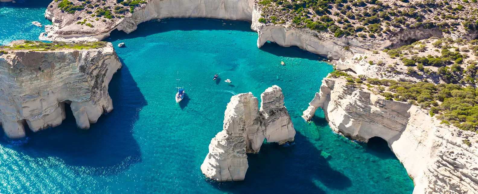 Send it to Milos, a rainbow of volcanic hues. After kayaking Sarakiniko's bone-white moonscape, snorkel the Papafragas Caves and then dock in Klima's candy-colored syrmata. Feast on grilled octopus in Mandrakia; twilight fishing camps glitter here.
