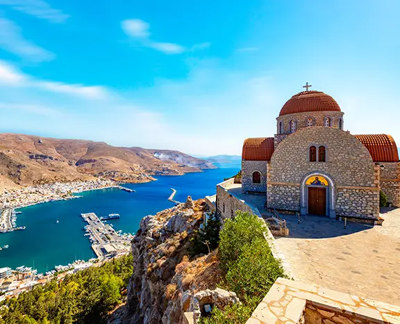 Run to Kalymnos, the heaven of the climbers. Cliffs Grande Grotta or snorkel Vathy Bay's emerald seas. At Pothia, eat mououri (stuffed squid) at a harborfront ouzeri and toast with foustalini, citrous liqueur. Adventure tip: Search for Kandouni Beach, a secret cove with azure peacock-blue waves by renting a scooter..